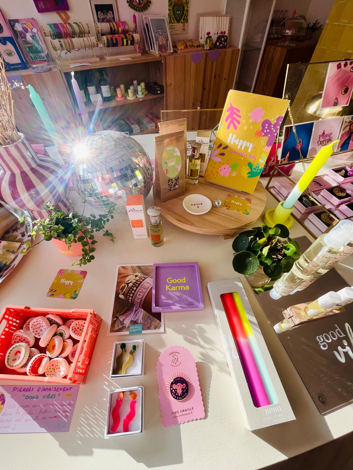 Plonge dans un univers coloré, pétillant et rempli de bonnes ondes. Ici, tu trouveras des pépites uniques : objets de déco, accessoires fun & stylés, cosmétiques naturels, du local, des trésors bien-être holistique et mes propres créations funky et hautes en couleurs. Plus qu'une boutique, c'est un concentré de positive vibes pensé pour égayer ton quotidien.