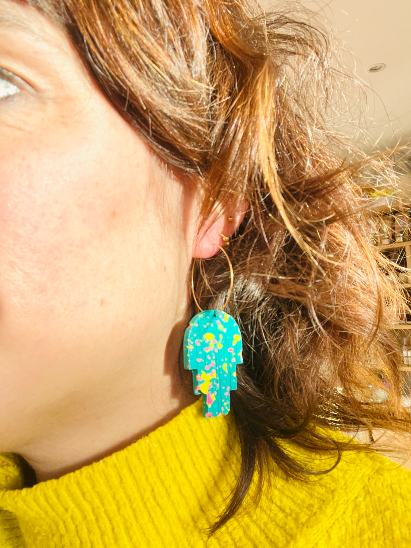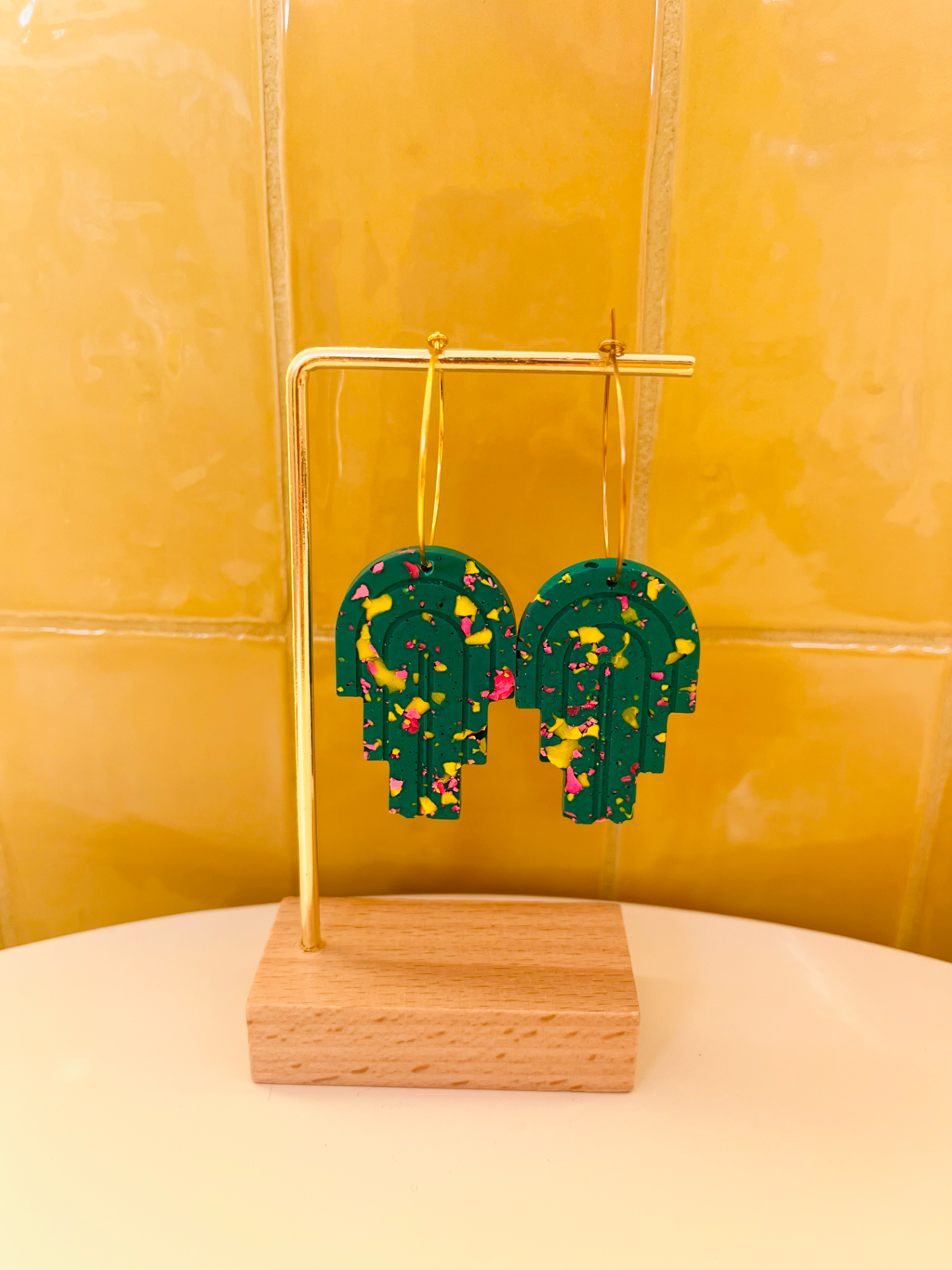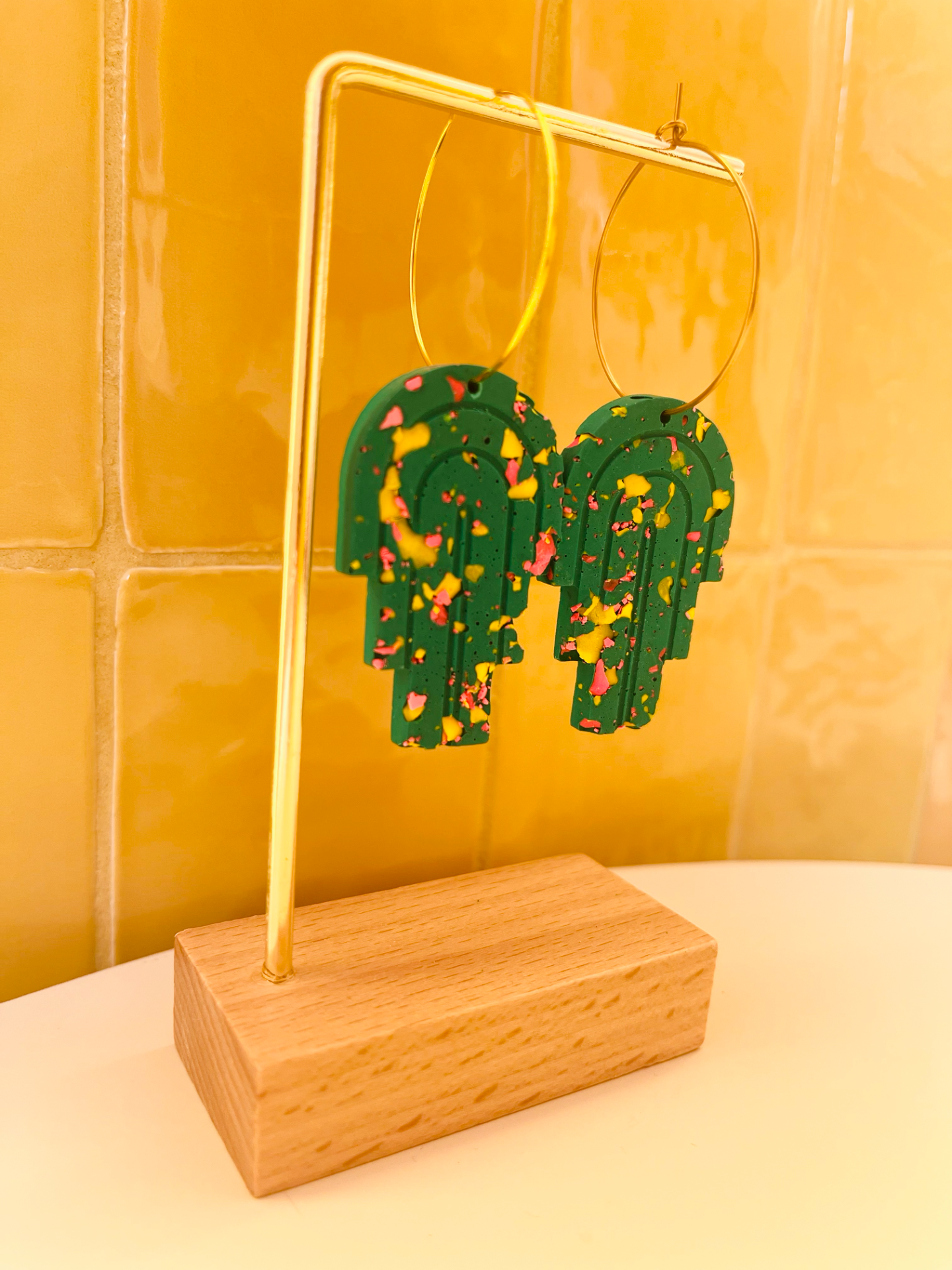 Paires de BO en jesmonite, résine éco-responsable, sans produits chimiques, ni solvants, good pour la planète.