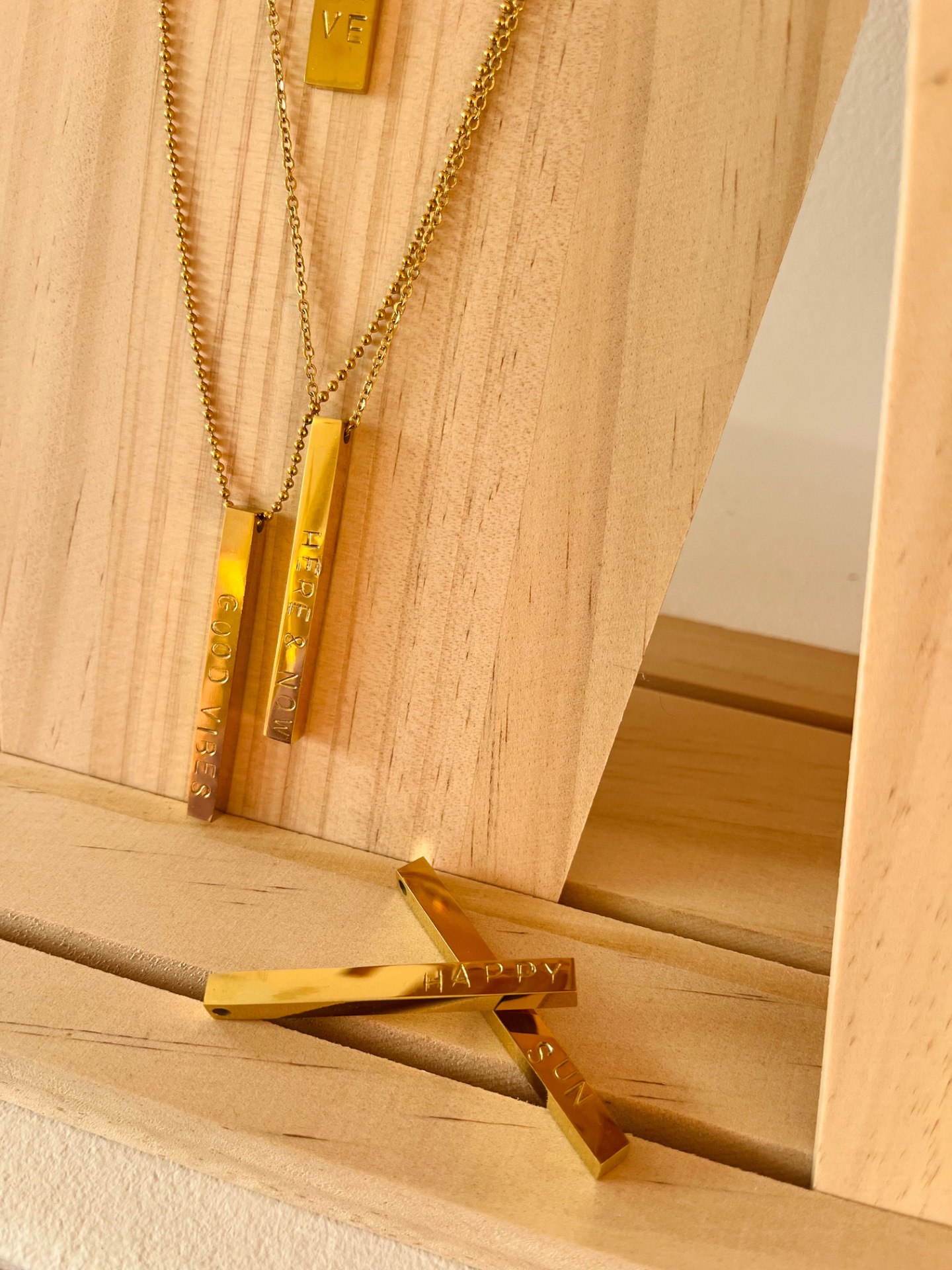 Collier doré amulette avec un joli mantra qui t'accompagnera...