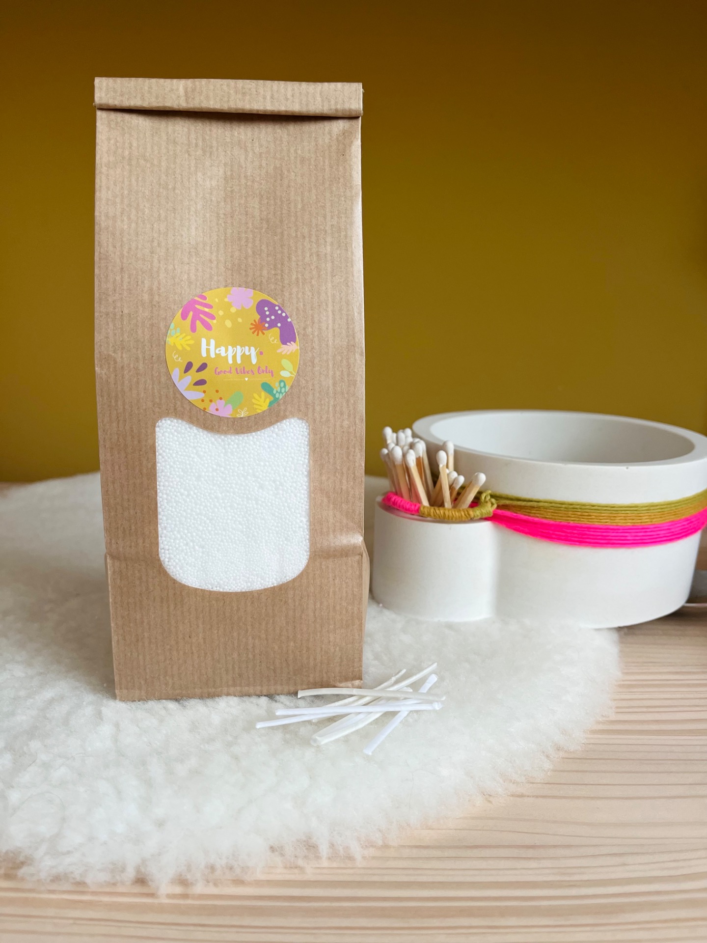 Transforme ton joli pot en une bougie en à peine quelques minutes. La pot est fourni avec tout le kit nécessaire, le sable de bougie réutilisable et des mèches qui te permettront de profiter d'une jolie boutique et de plusieurs heures de combustion.