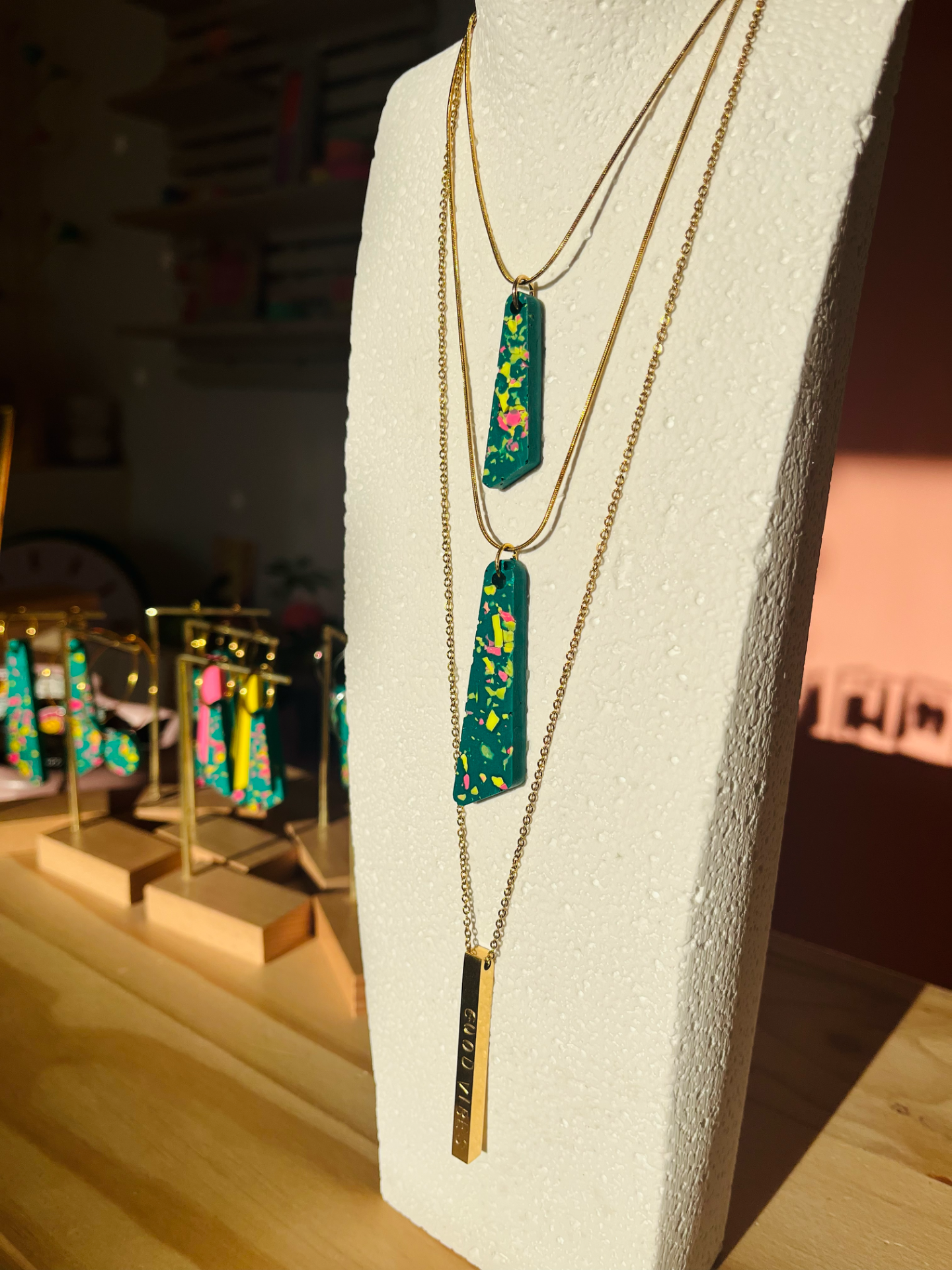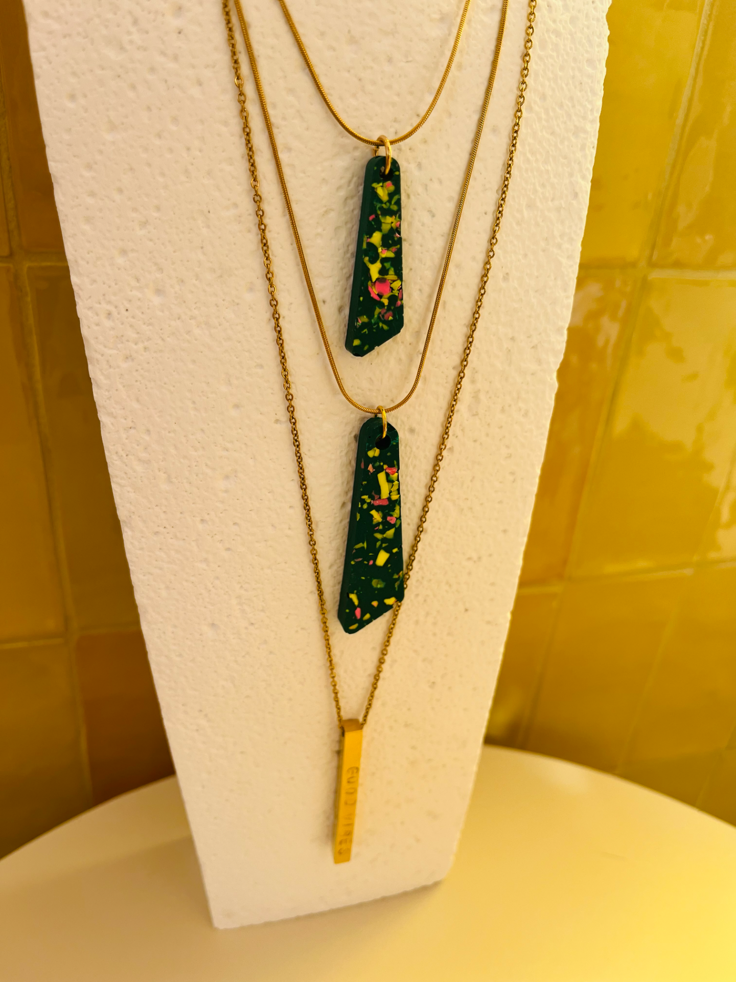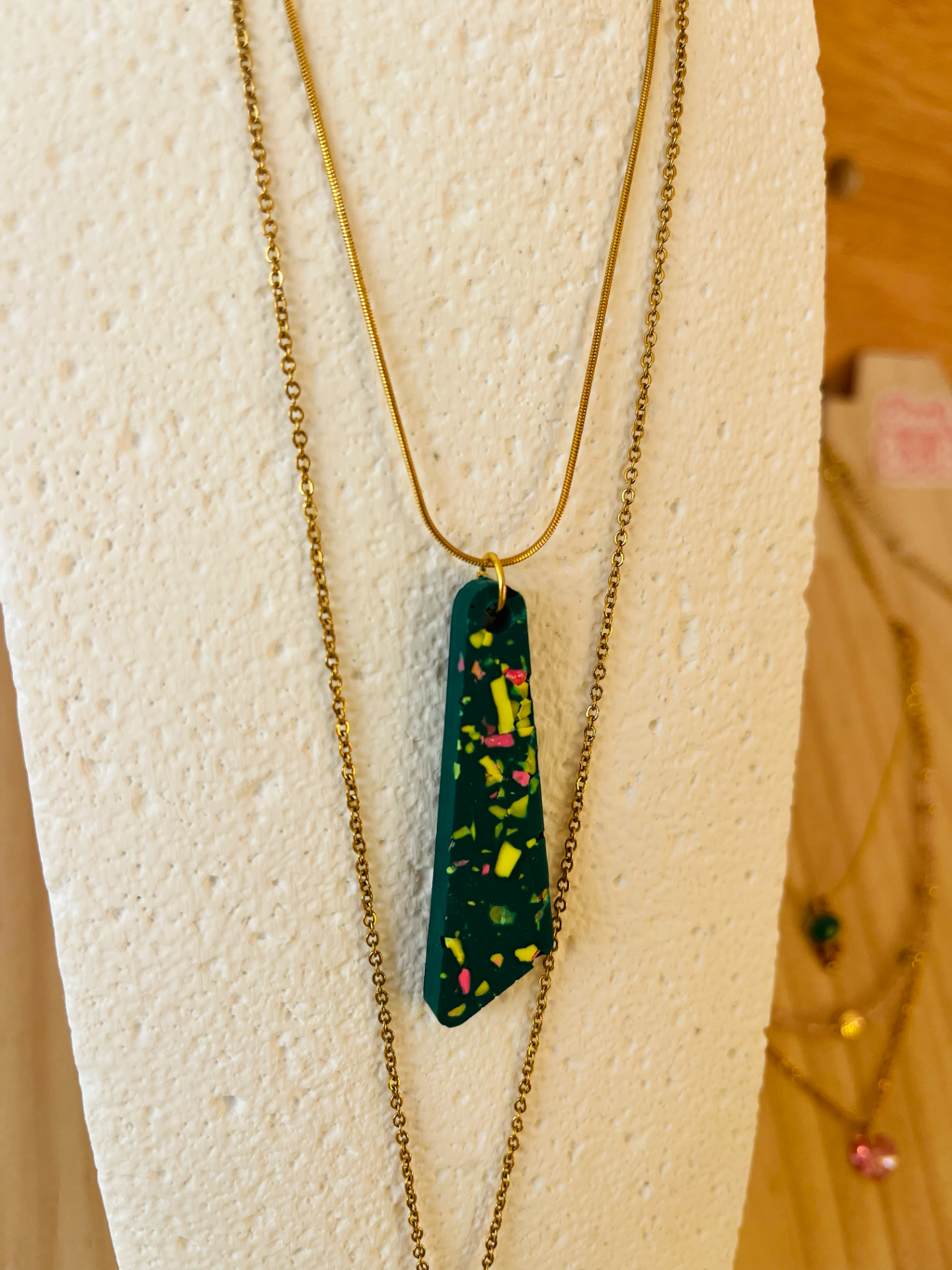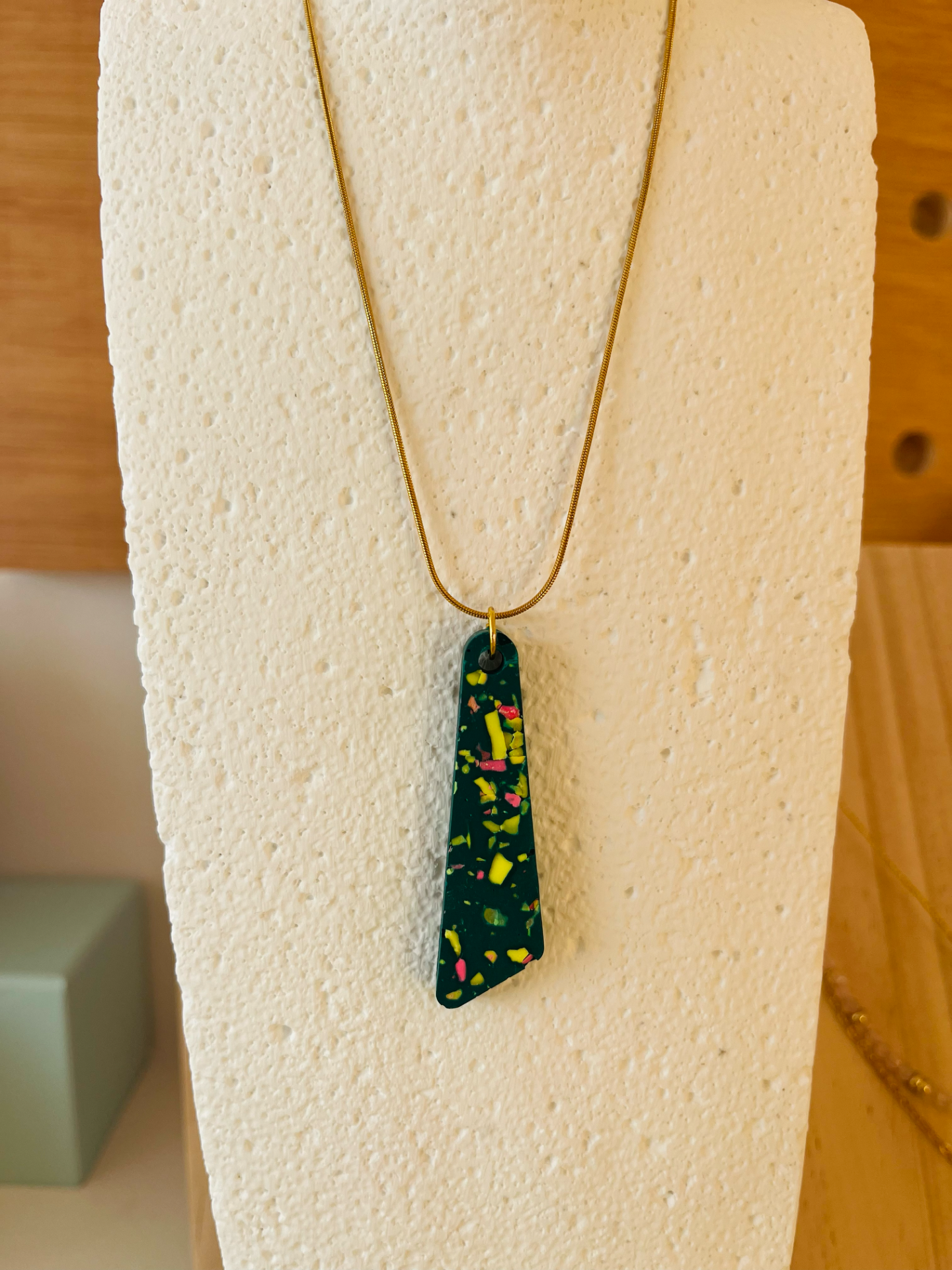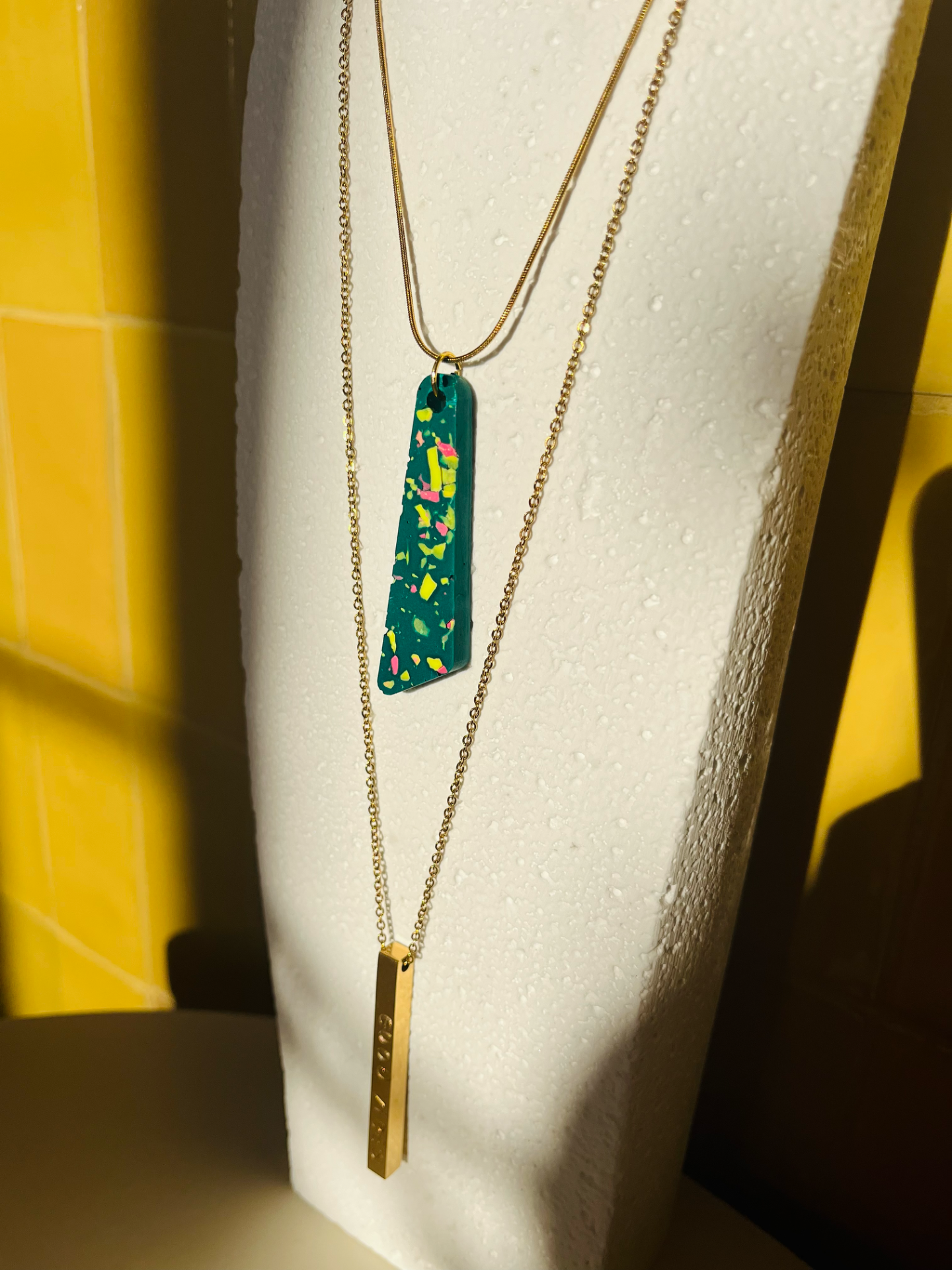 Collier en jesmonite, résine éco-responsable, sans produits chimiques, ni solvants, good pour la planète.