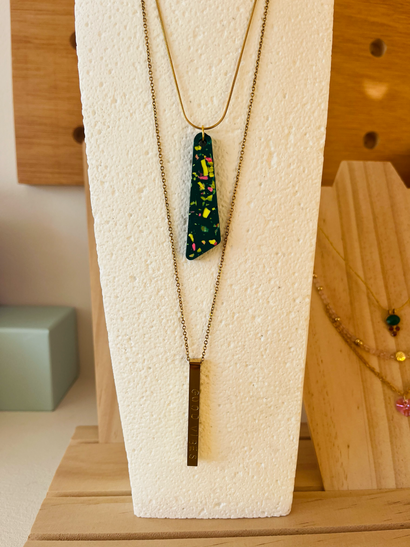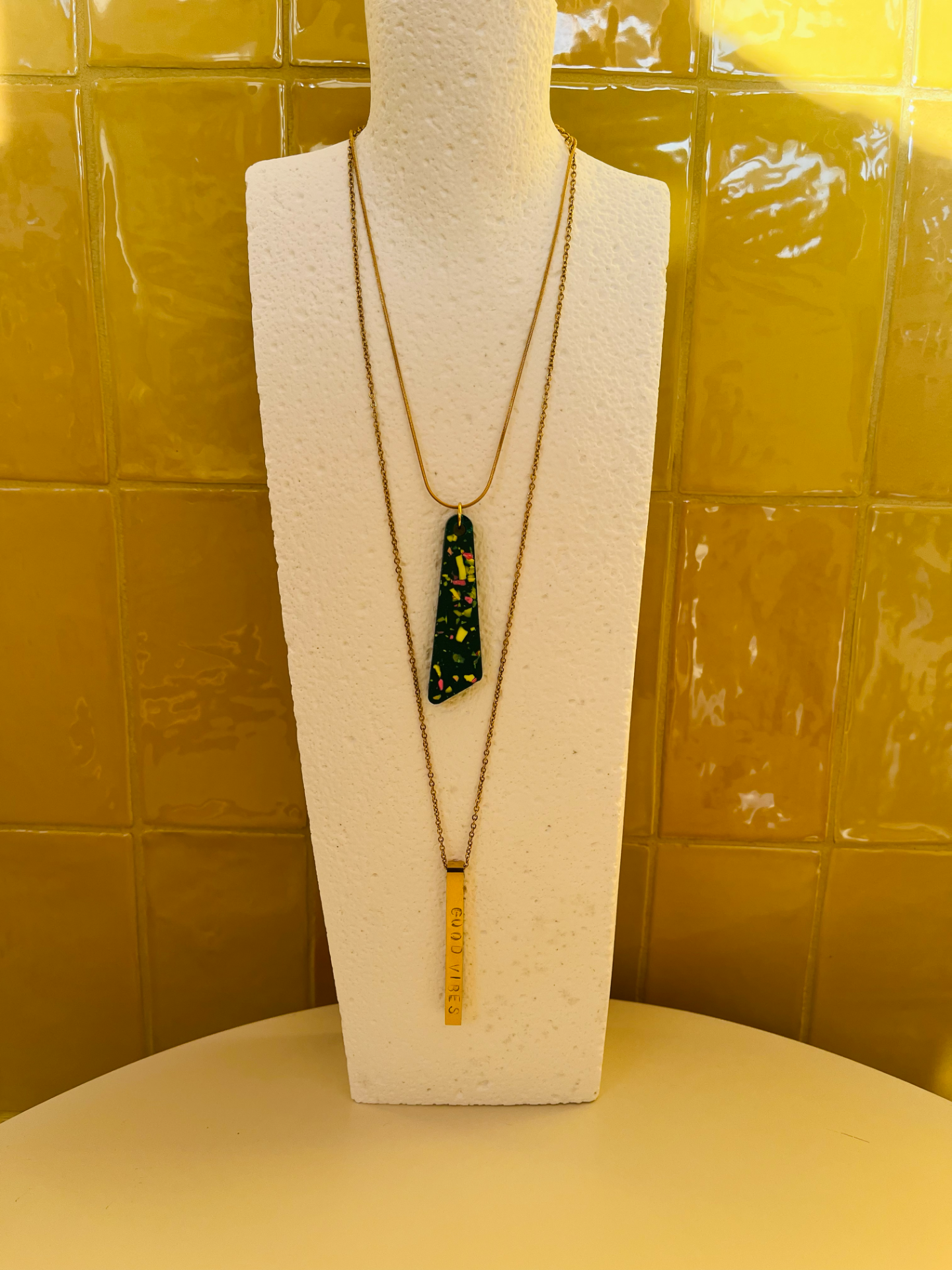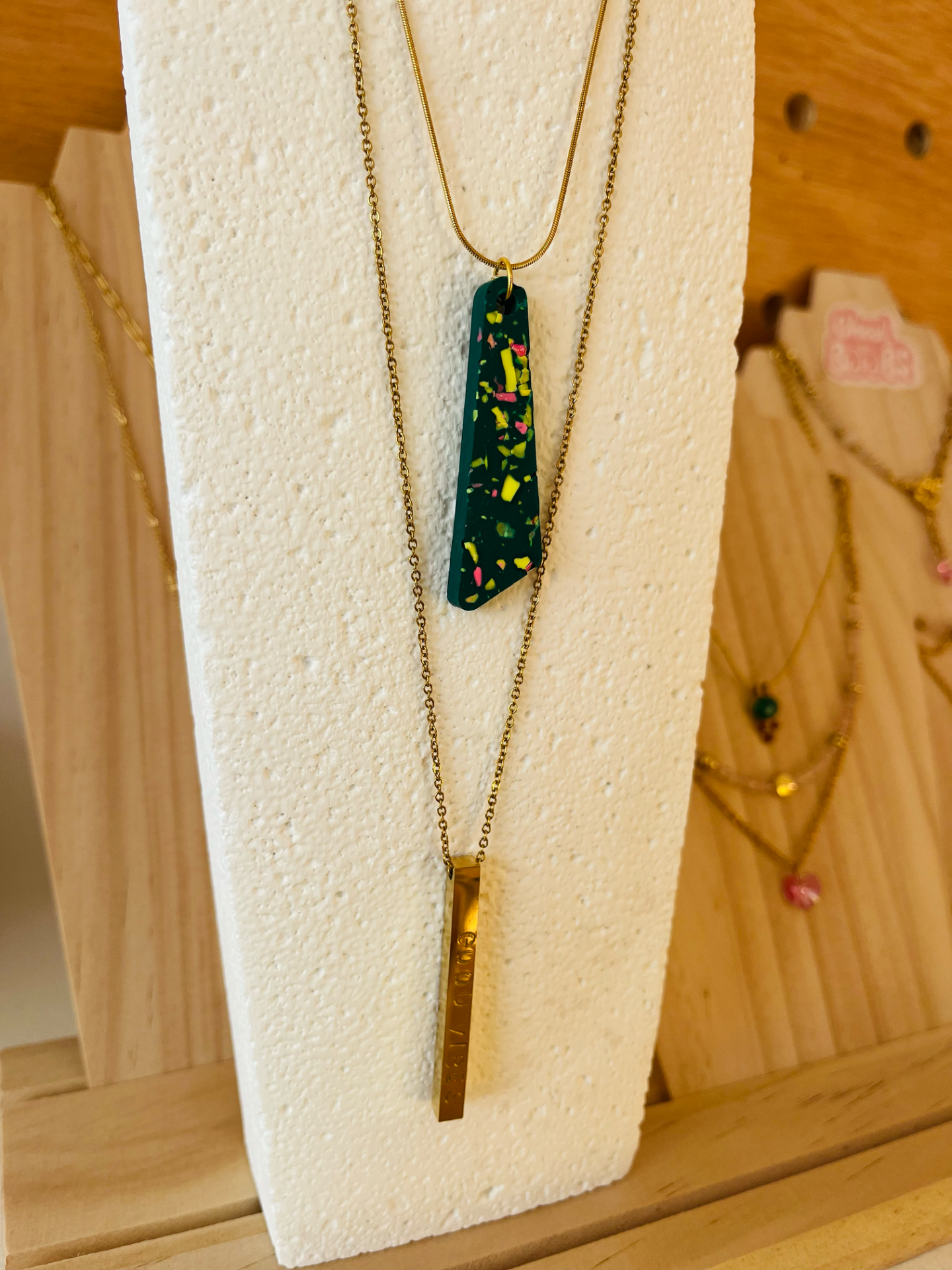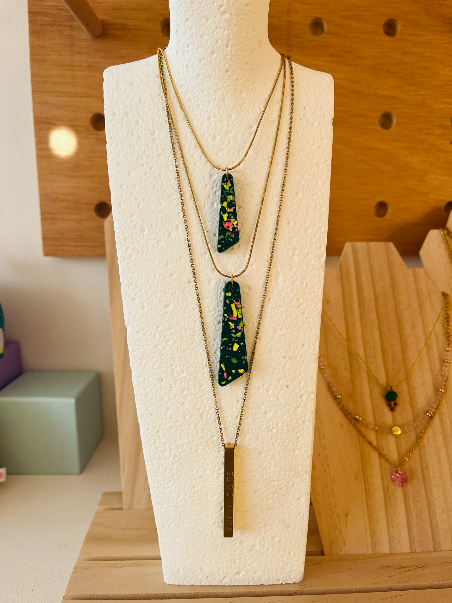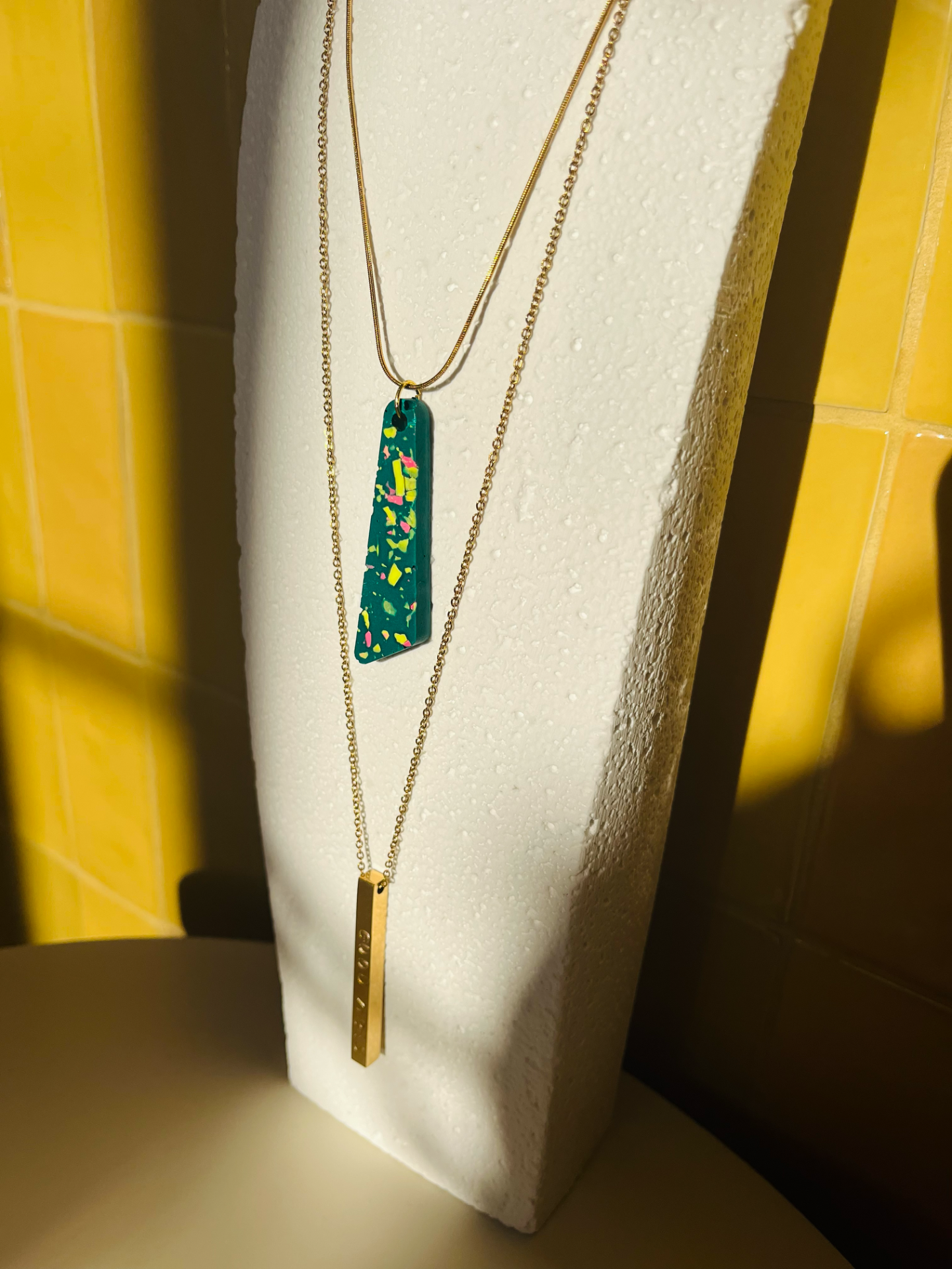 Collier en jesmonite, résine éco-responsable, sans produits chimiques, ni solvants, good pour la planète.