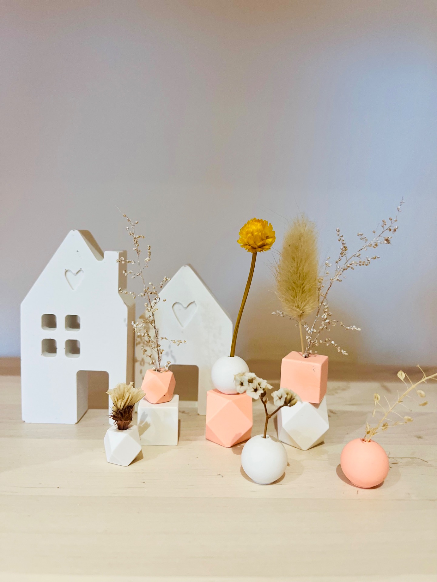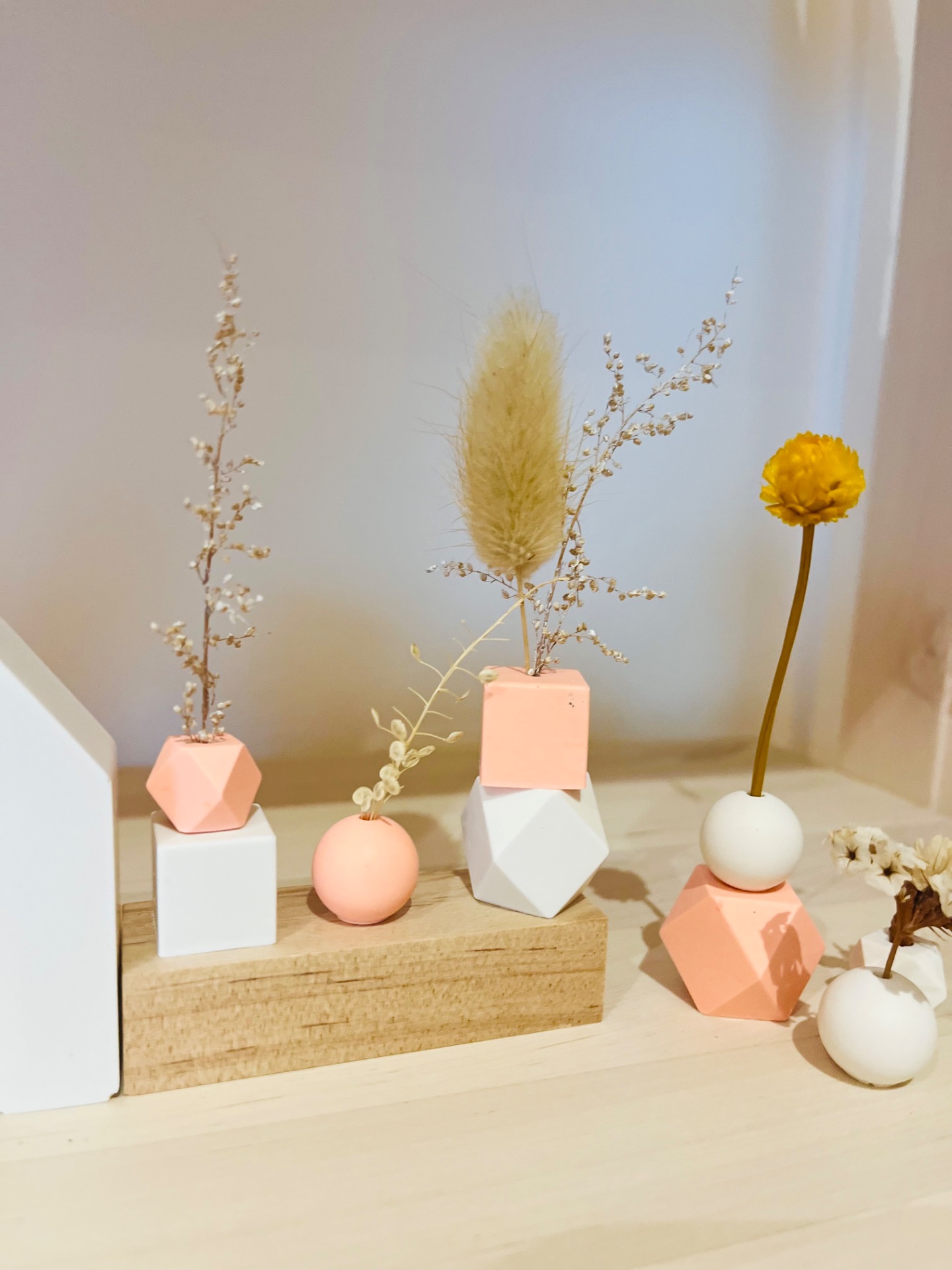 Des petits objets simples, graphiques et super jolis, parfaits pour apporter une touche douce et stylée à ta maison, ils sont réalisés à la main en jesmonite, résine eco responsable.