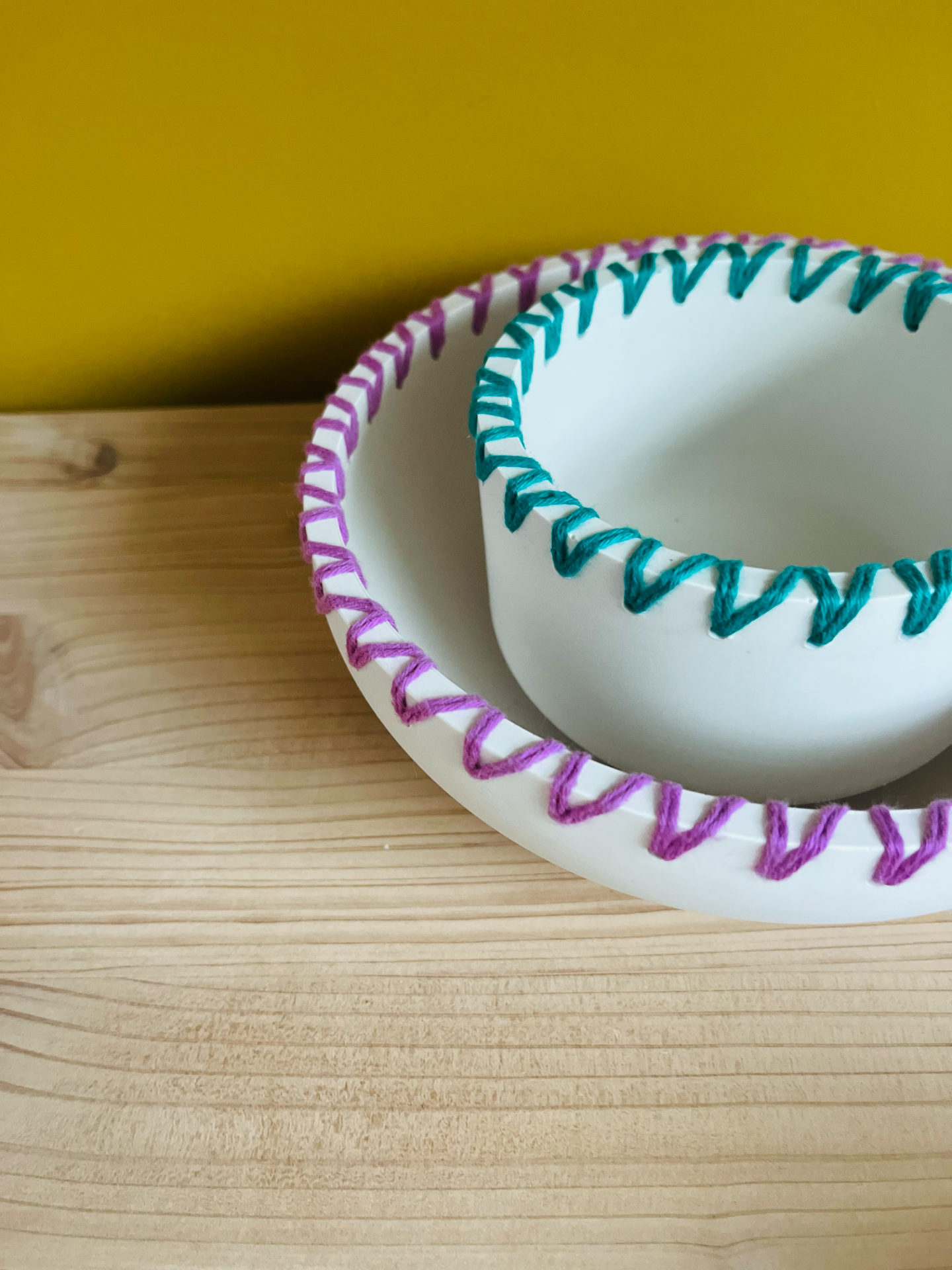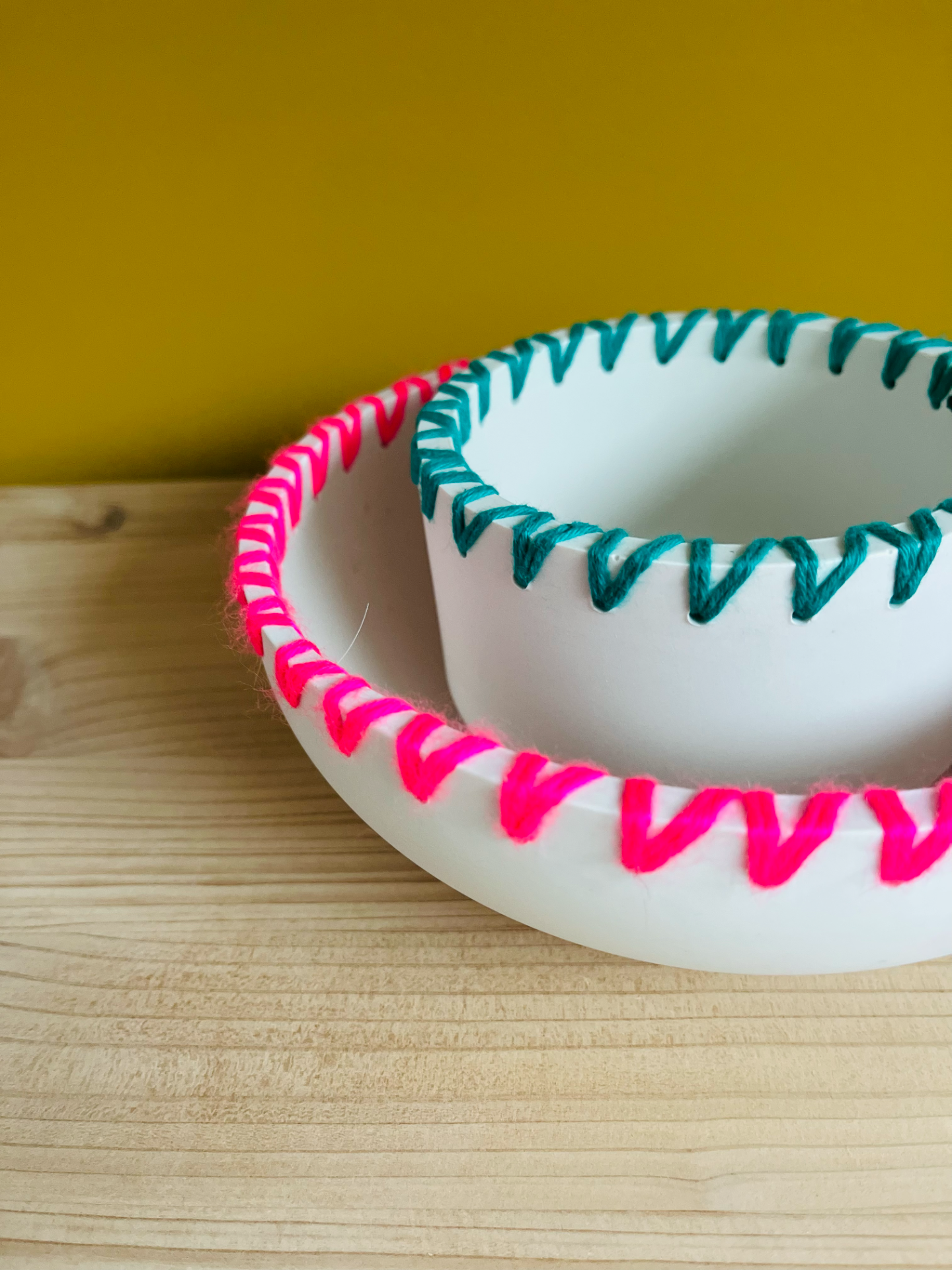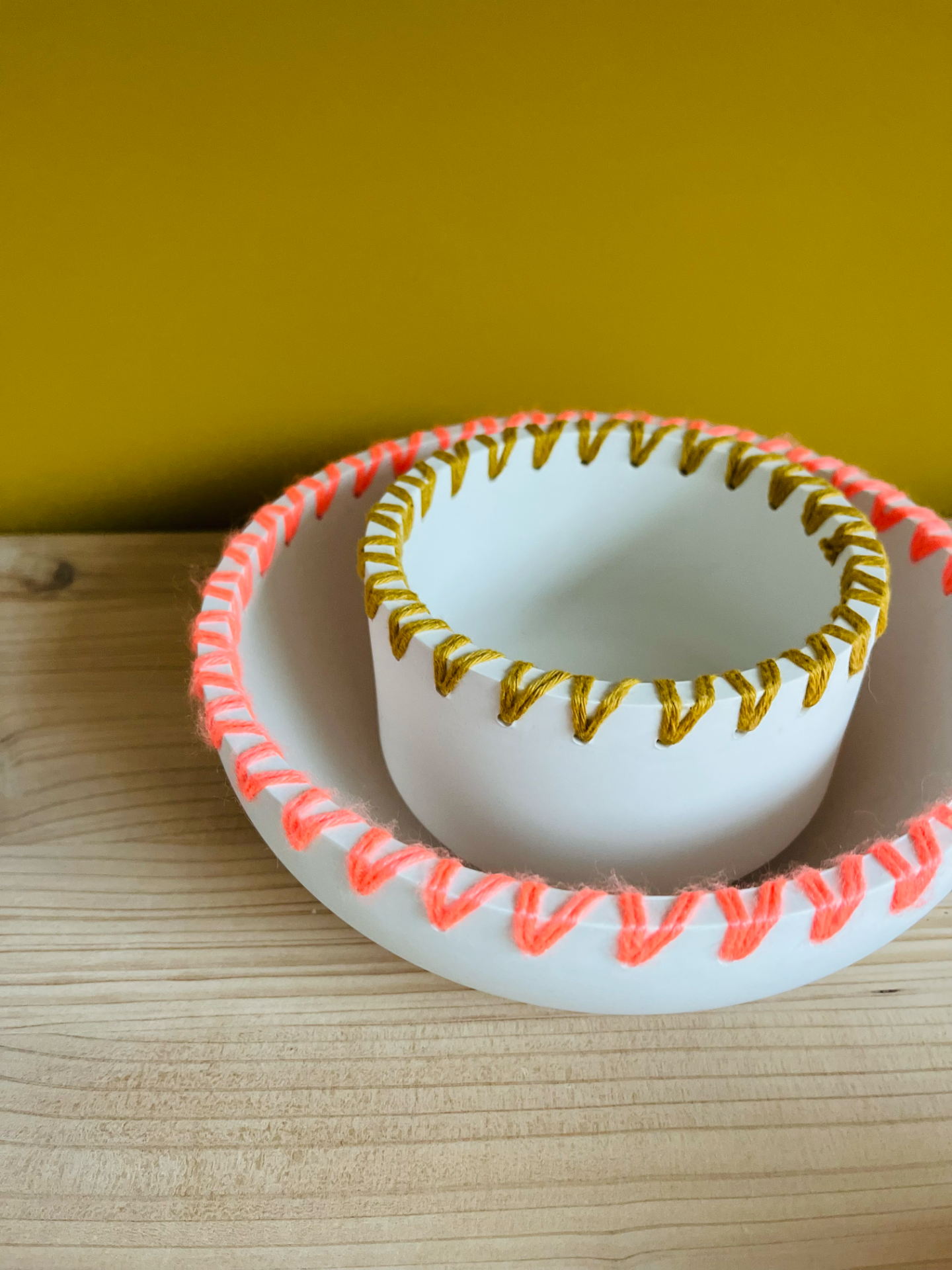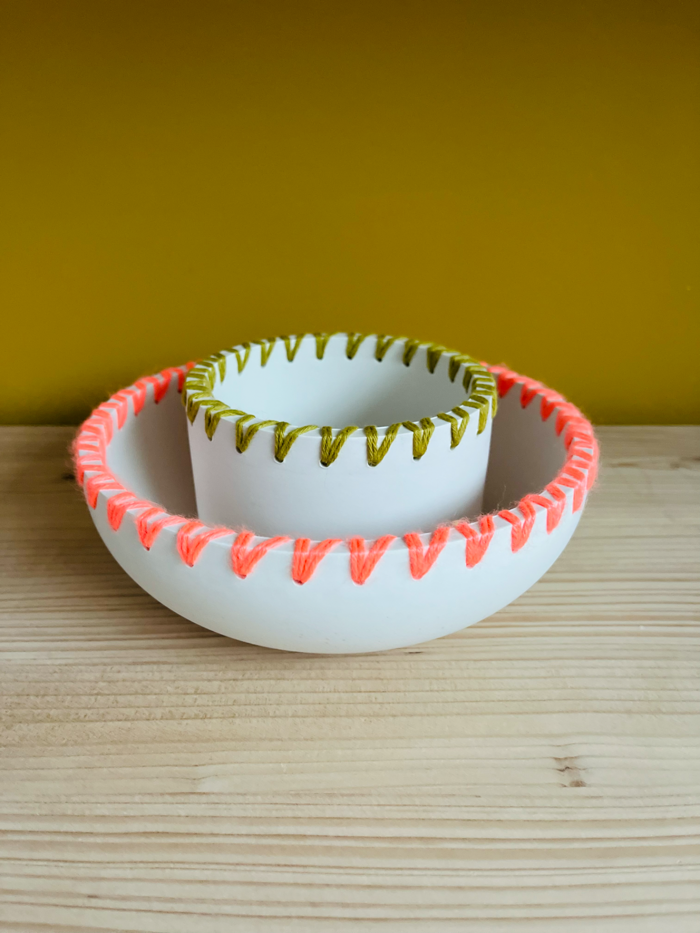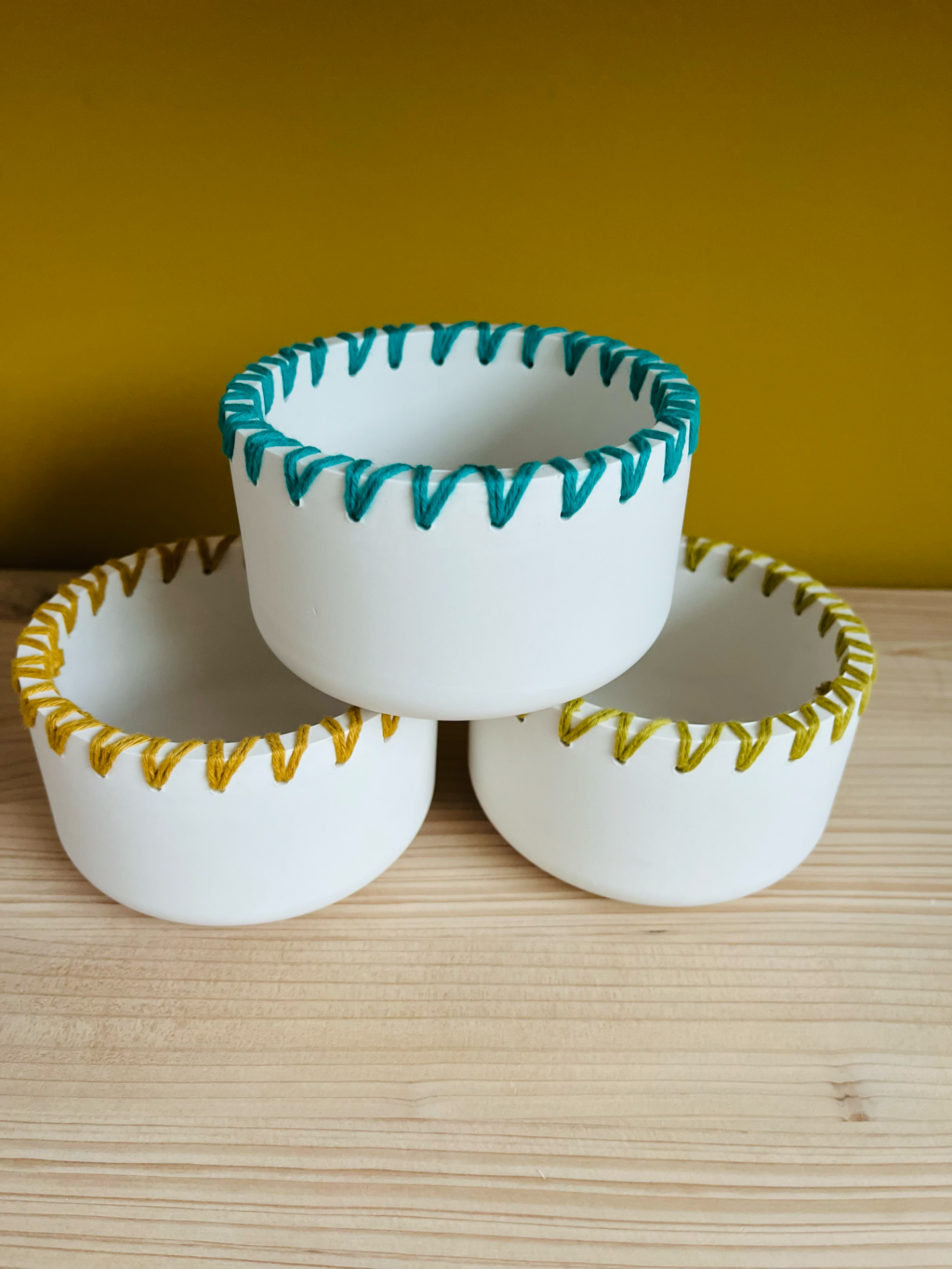 Joli pot réalisé à la main en Jesmonite, résine éco responsable, décoré de joli laine colorée pour un look unique, accessoire déco pouvant aussi servir de bougeoir, tu peux y mettre une plante ou comme rangement. Ne peut pas être en contact avec des aliments.