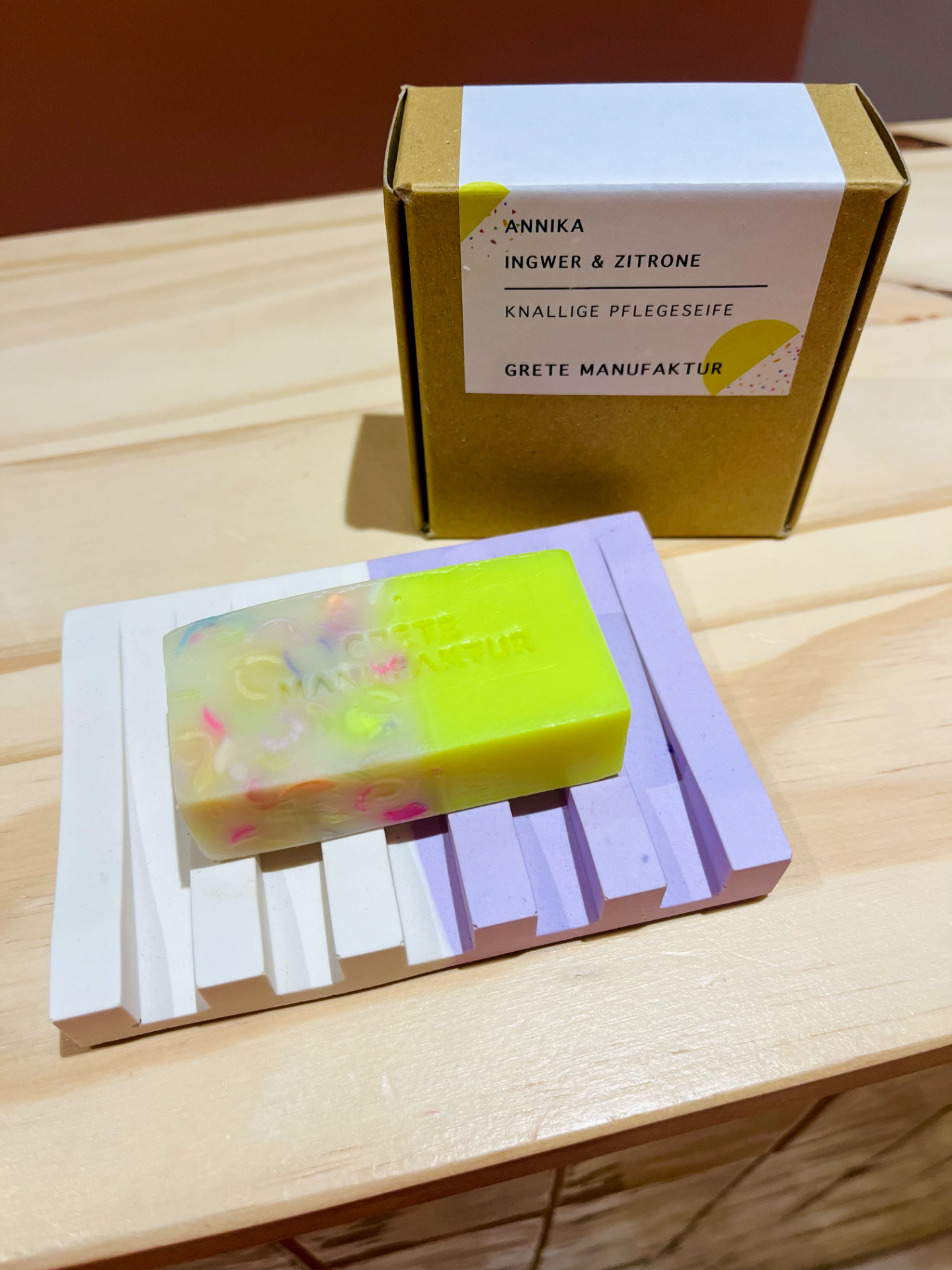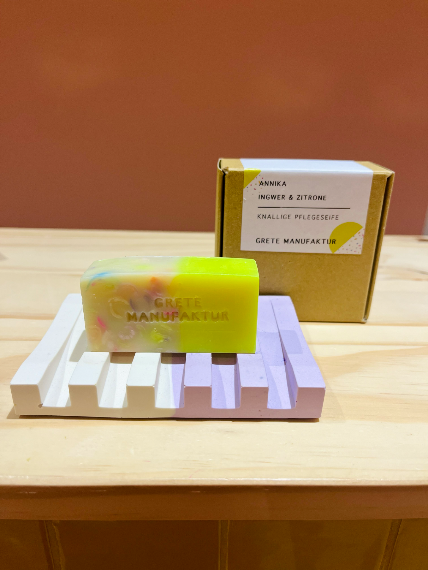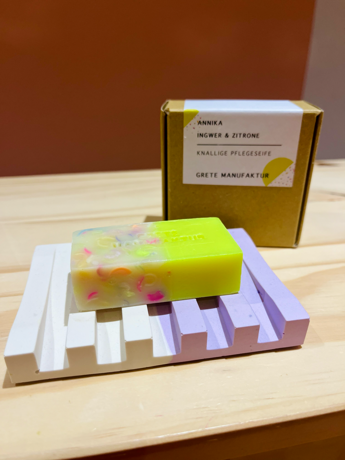 Coloré, audacieux et plein d'énergie, le savon « Annika » égaye votre salle de bain tout en prenant soin de votre peau.