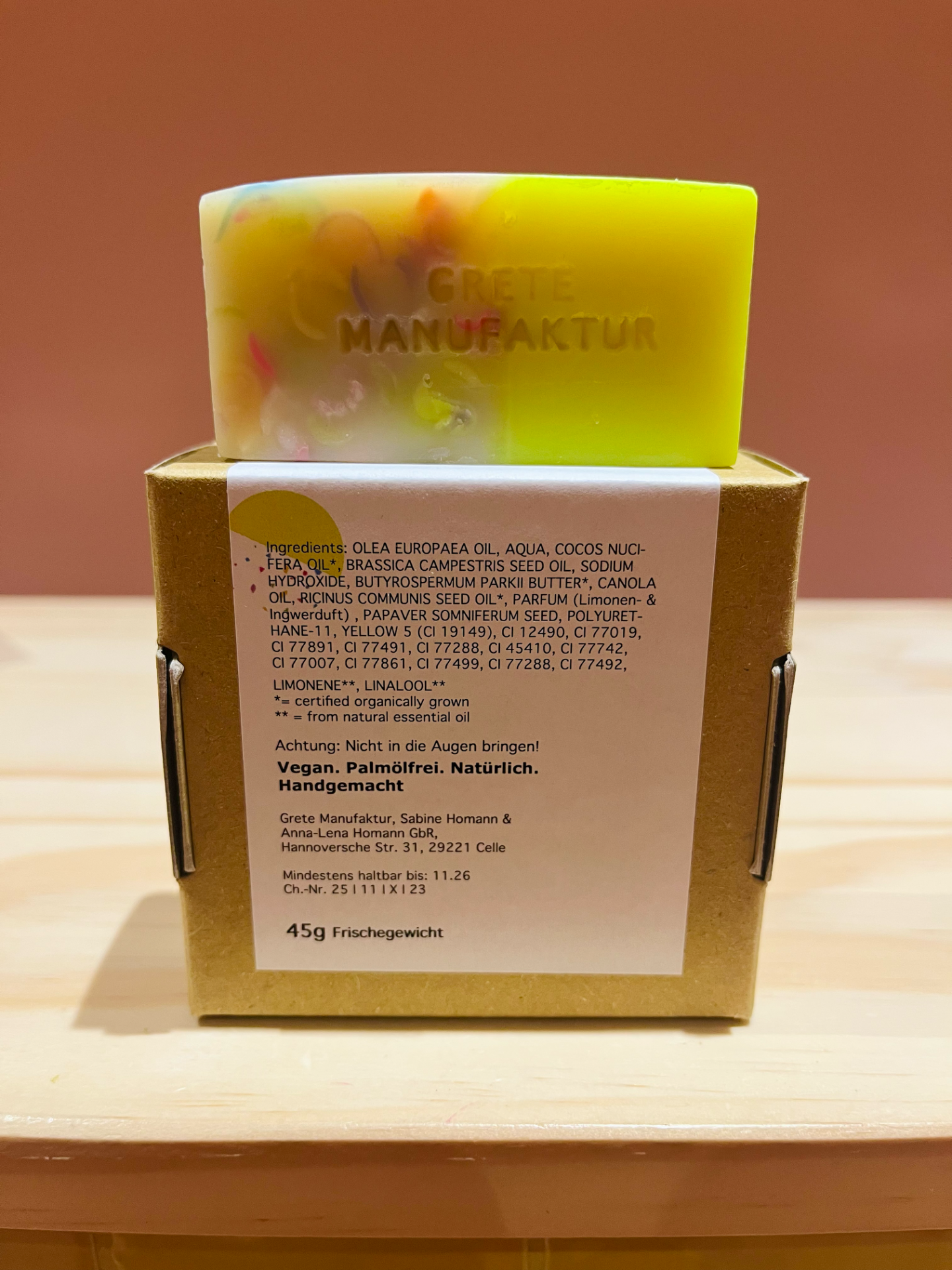 Idéal pour tous les types de peau, il convient parfaitement aux petites mains – ou aux grandes mains qui aiment une touche de couleur. Naturellement végan, sans huile de palme et fabriqué artisanalement avec amour.