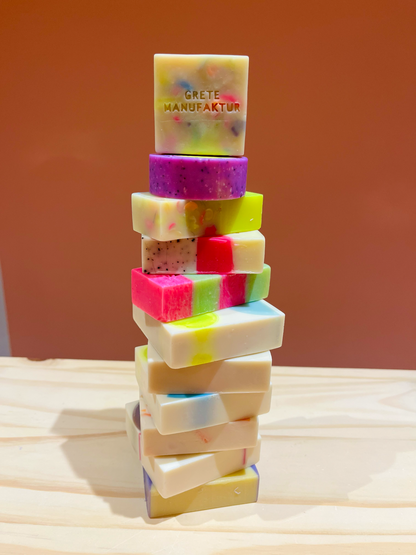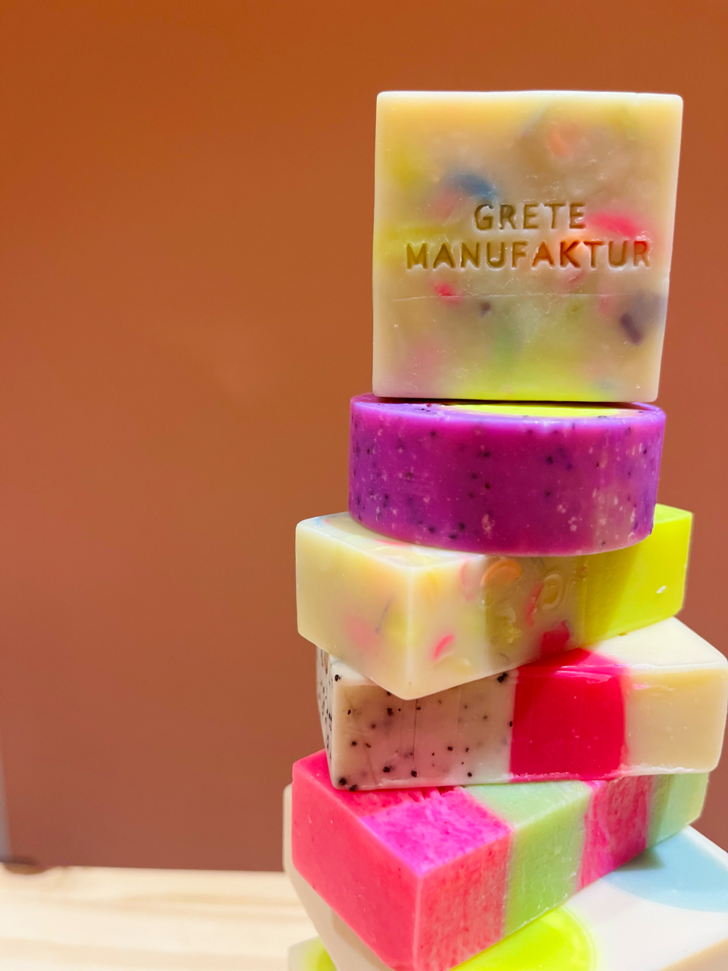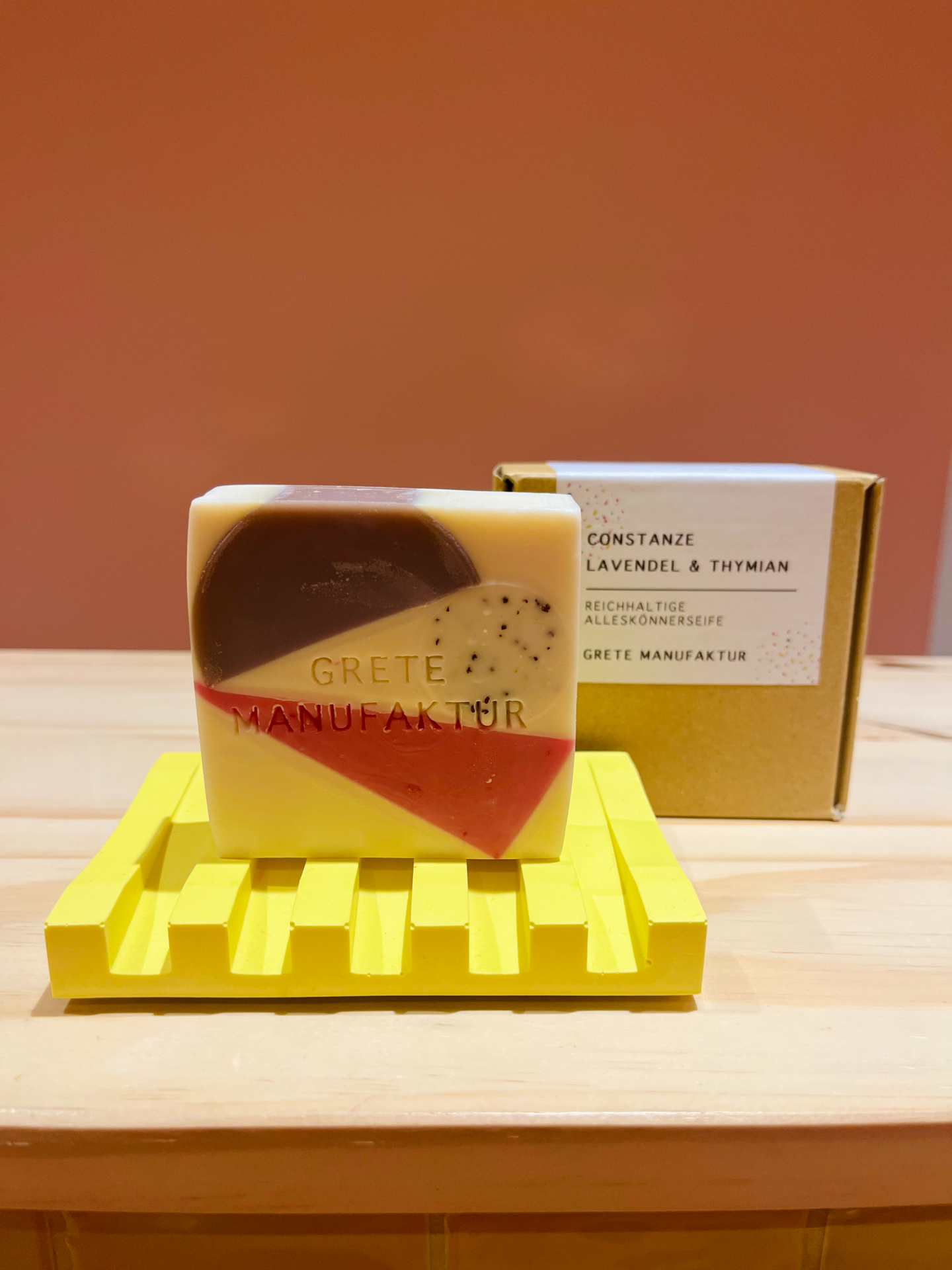 Constanze est enrichie en huile de coco pour une hydratation optimale et contient également du beurre de cacao et de l'huile d'amande douce régénérante. Fabriquée artisanalement avec amour par Grete Manufaktur.